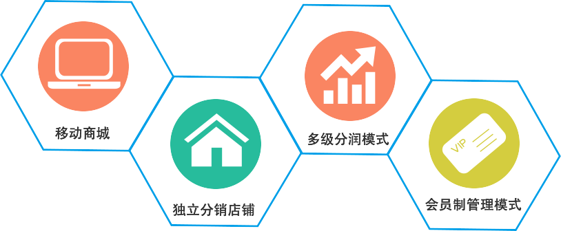 集“移動商城+獨立分銷店鋪+多級分潤模式/會員制管理模式 幫助企業(yè)搭建移動分銷平臺,基于社交分享幫助產品銷售、渠道管理、品牌推廣